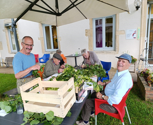 La vie est douce à la Résidence. Tri des fleurs de tilleul données par Marie-Rose Passot pour la tisane des futurs goûters.