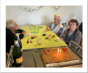 Jacqueline SANS, Camille RENARD et Jeanine BUSSIERE. Puis Gérard Briday, nouveau président de l’association, bénévole investi depuis longtemps à la résidence. Mme de L’ESCAILLE et René MARUEJOL ont également soufflé leurs bougies ce trimestre. C’était aussi l’anniversaire de Mme LAMB qui est venue nous rendre visite