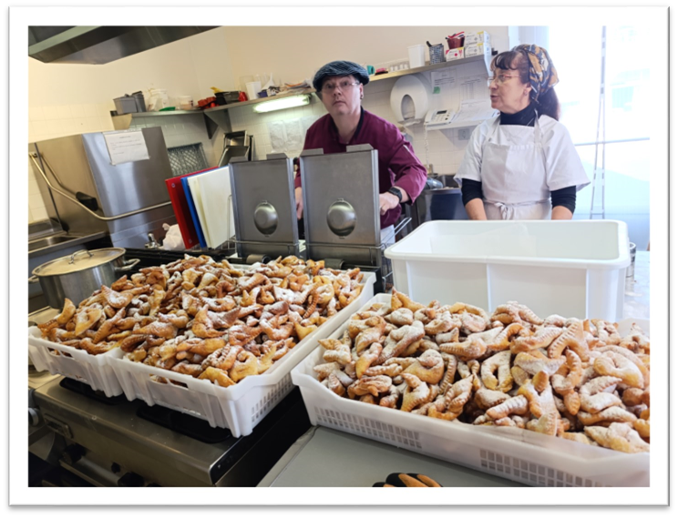 Cette année, 40kg de bugnes réalisés sous la houlette de Frédéric Les personnes sont venues récupérer leur commande à la Résidence. nous en avons vendu 35kg.
