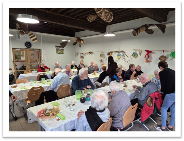 La majorité des bénévoles, les résidents et le personnel ont partagé ce délicieux repas, préparé avec amour et professionnalisme par Monique et Frédéric qui mettent chaque fois tout leur cœur pour nous offrir le meilleur. Ambiance assurée dans la joie et la bonne humeur . Merci à tous