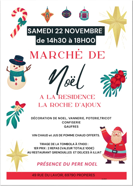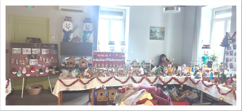 Cette année encore, un marché de Noël enchanteur ! Tous les lutins se sont surpassés pour montrer le meilleur. Une symphonie, de couleurs, d’odeurs, de formes et de créativité en tous genres ! Le public, nombreux, a joué le jeu et de nombreuses pièces sont parties réjouir les maisons alentours (ou plus loin !). Tout cela soutenu par une ambiance, simple et chaleureuse. La tombola, très fournie , a fait de nombreux heureux ! Merci à tous, sincèrement, pour l’implication à tous les niveaux. Nous mesurons la chance de vous avoir tous à nos côtés pour ces moments forts en échanges. Ils sont indispensables pour renforcer le bon déroulement des activités des résidents.